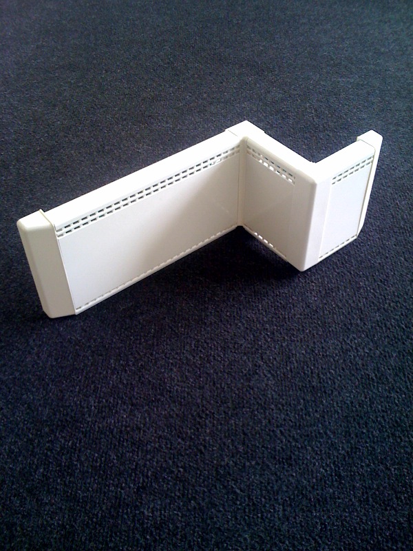 Hydronic Wanpan skirting board heating system has few design details, including ending parts, corners and panel connection covers, which make this energy efficient heating system to be perfectly suited for high scale indoor design projects. The ending plug – (measurements 5,12/0,98/1,61 inch) is used at the end of the row of heating panels (at the door) and wraps up the ending design of hydronic heating system accordingly.
